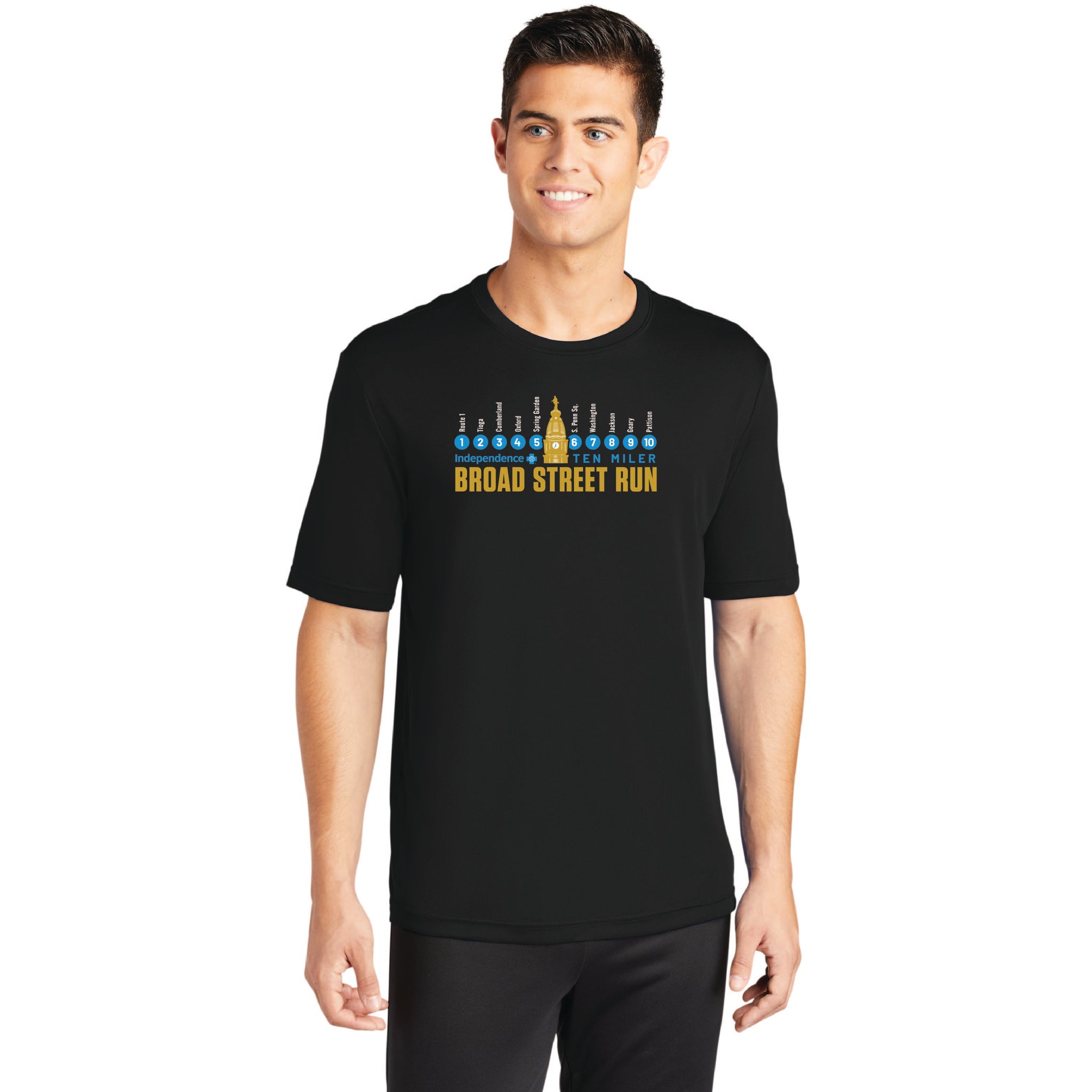 The Iconic Broad Street Run Subway design. This performance tee is moisture-wicking, and features breathable, 3.8 oz. 100% polyester interlock fabric. Item ID bspd7b1112m