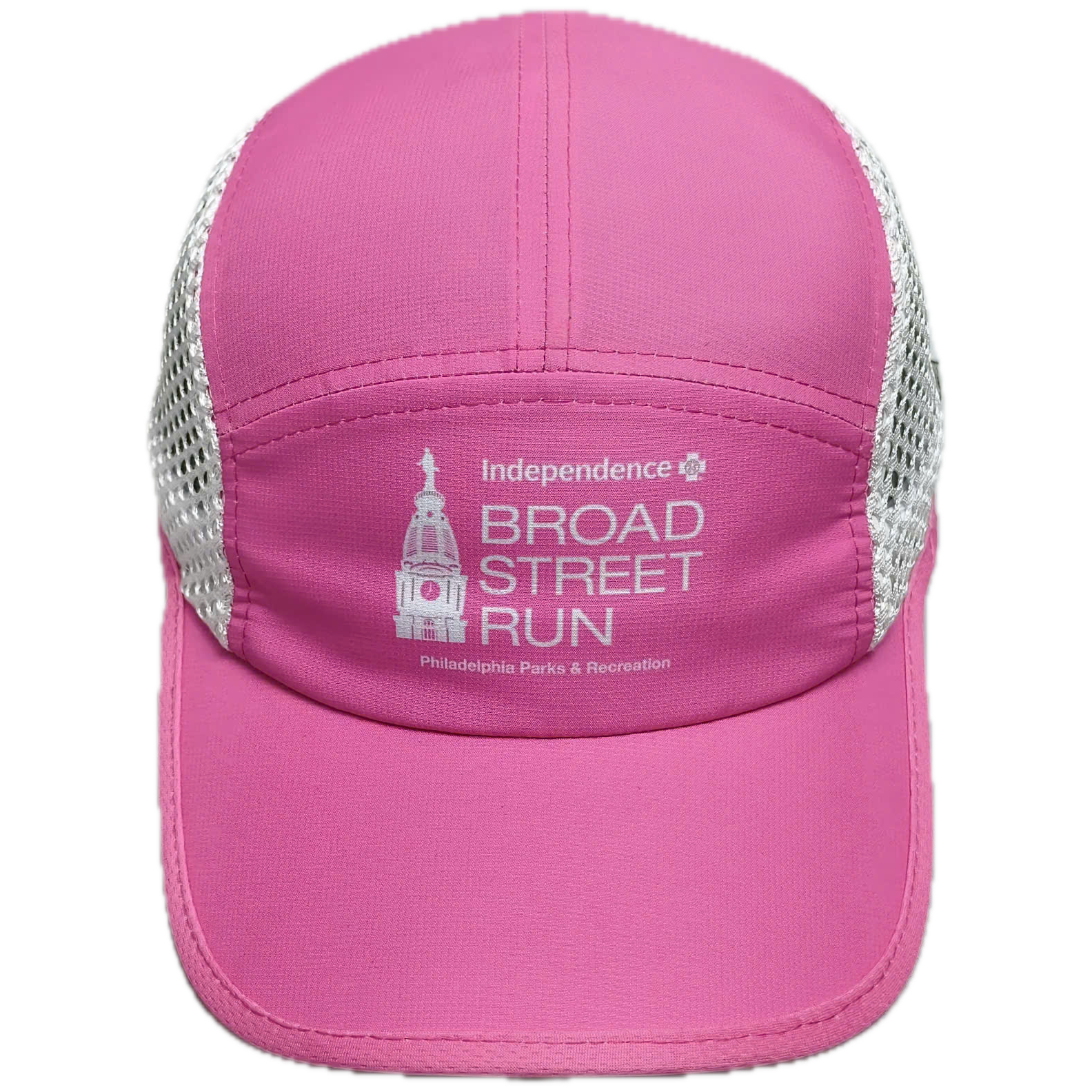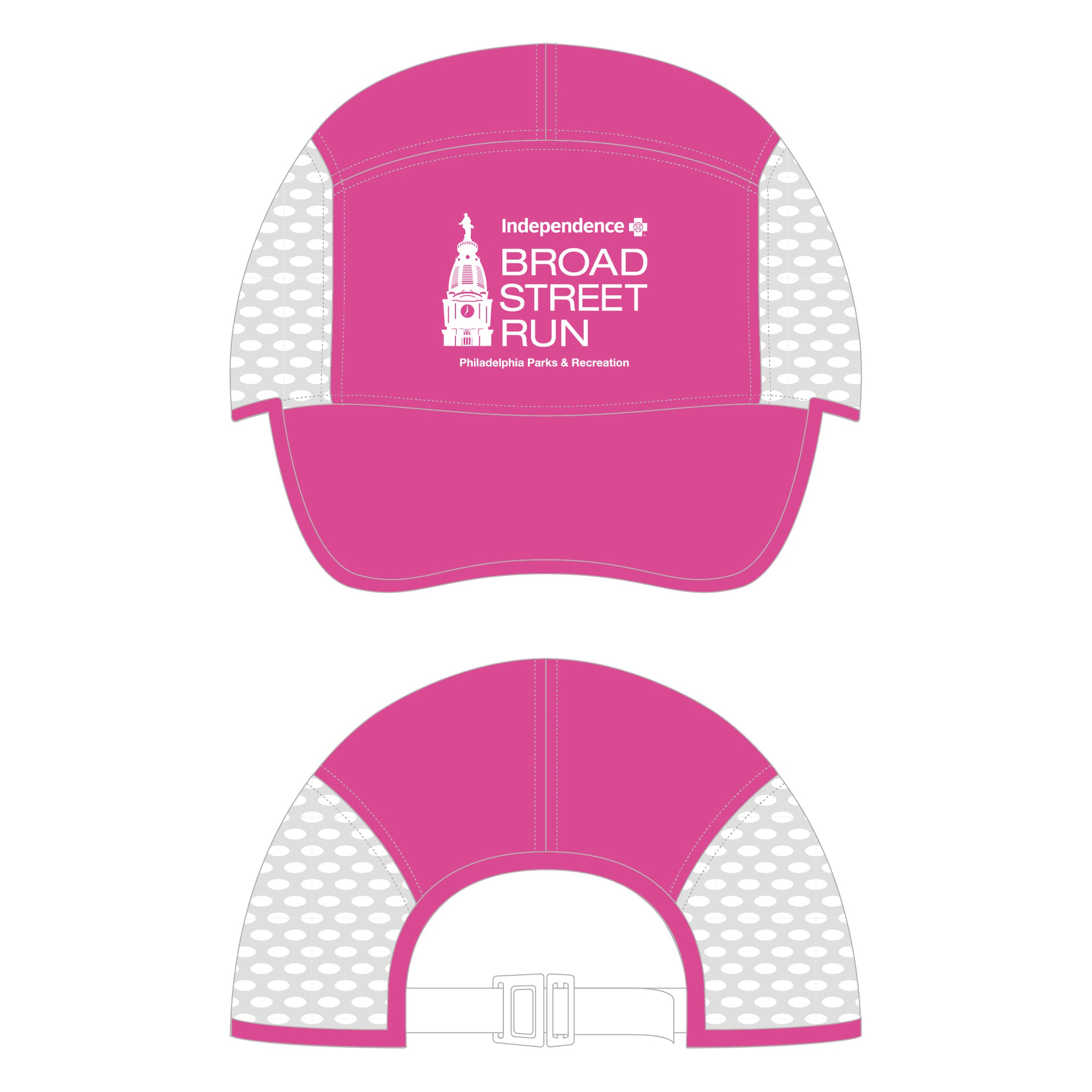 Broad Street Run Headwear. Ventilator mesh side panels for enhanced cooling; lightweight wicking woven poly panels; soft poly mesh wicking sweatband; adjustable back snap buckle with tuck in pocket; black underside bill to reduce glare; curved bill; machine washable; one size fits most. From Boco. Item ID bsphC329